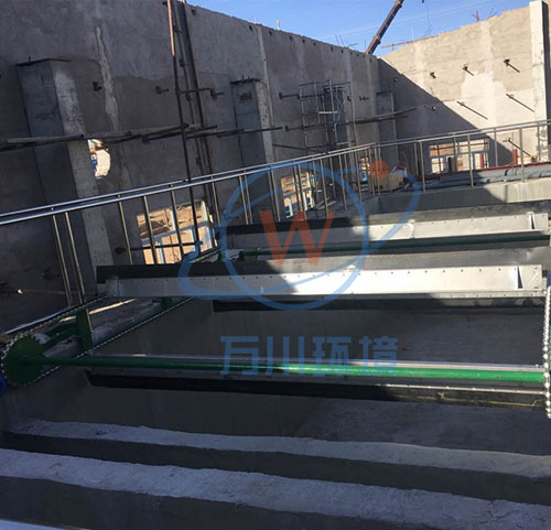 鏈板式刮沫機主要由減速機,傳動裝置,刮板,主從動軸,鏈條及鏈條托架組成。結構簡單,使用方便,性能穩定。減速機可調速或定速。